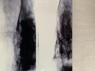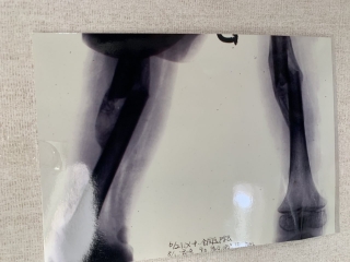 男子 12歳 陸上競技ダッシュの練習中、コーナーを走っていた際球に激痛と同時に転倒動けなくなった。螺旋骨折です。骨癒合はおうせいですが、短距離選手で大腿部の筋肉が発達していて、固定の保持、管理が大変でした。